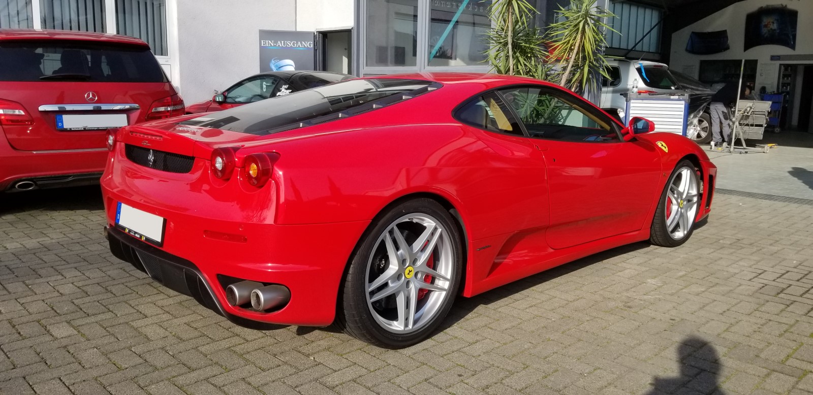 Der Ferrari F430 ist ein italienischer Sportwagen, produziert in Maranello in der italienischen Provinz Modena. Der rote Flitzer wurde zwischen 2005 und 2009 von Hand gefertigt. Der V8 Mittelmotor leistet 490 PS und beschleunigt die Insassen in ca. 4 Sekunden von 0-100 Km/h. Die Tachonadel steht erst jenseits der 315 km/h Marke still. Bei dieser roten Flunder durften wir gleich zweifach tätig werden: beseitigen von Schrammen vorne links an der Stoßstange und „Schürfwunden“ an der rechten hinteren Flanke.